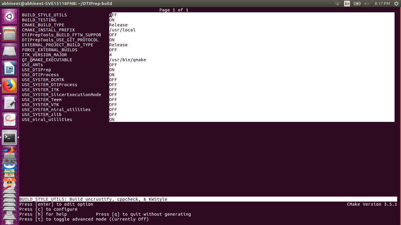 abhineet@abhineet-SVE15118FNB:~/DTIPrep-build$ cmake ../DTIPrep
