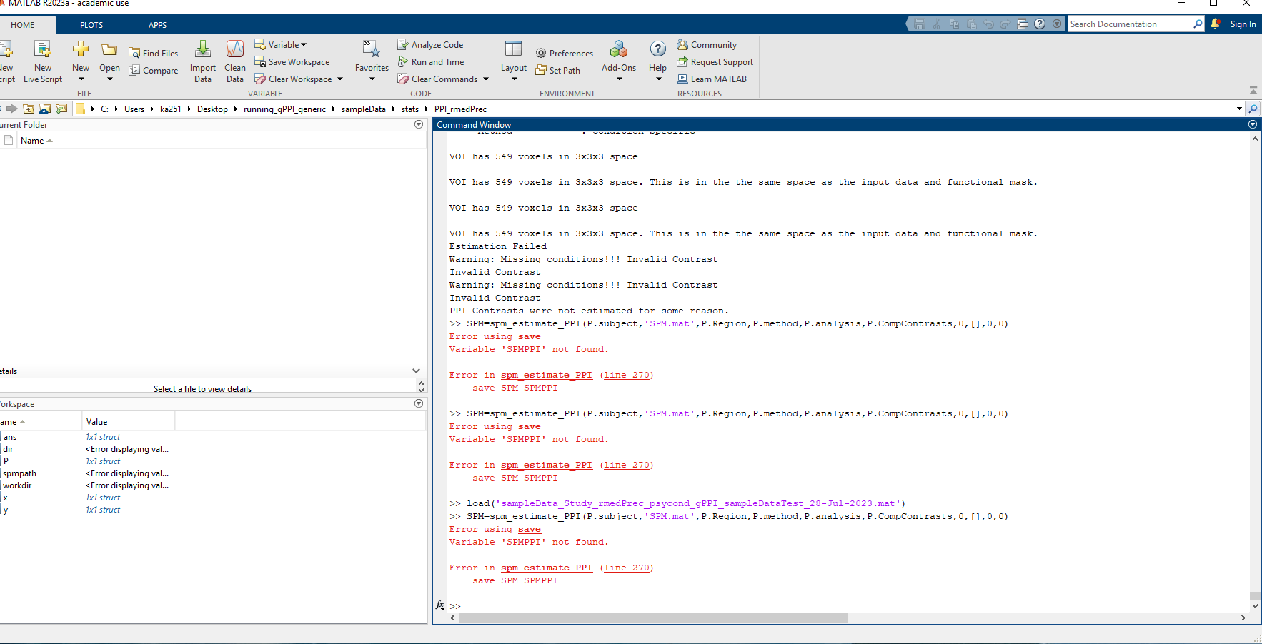 I hope this message finds you well. I need help with the following issue in running the PPPI toolbox in SPM8. I am using Matlab 2023a.