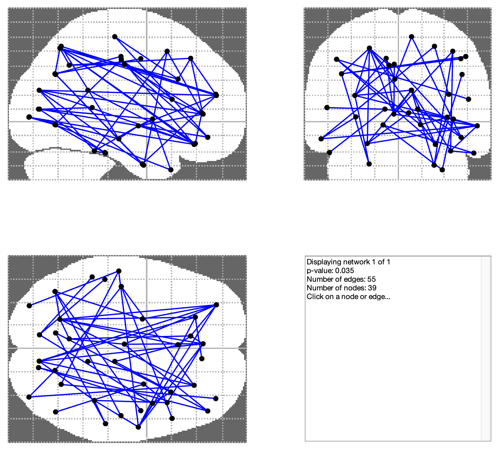 Threshold: 0.5 -to- 22 - I have ran the code for a wide range of threshold values, but even at t=22 I have a large network of significant connections, which to me seems unusual.