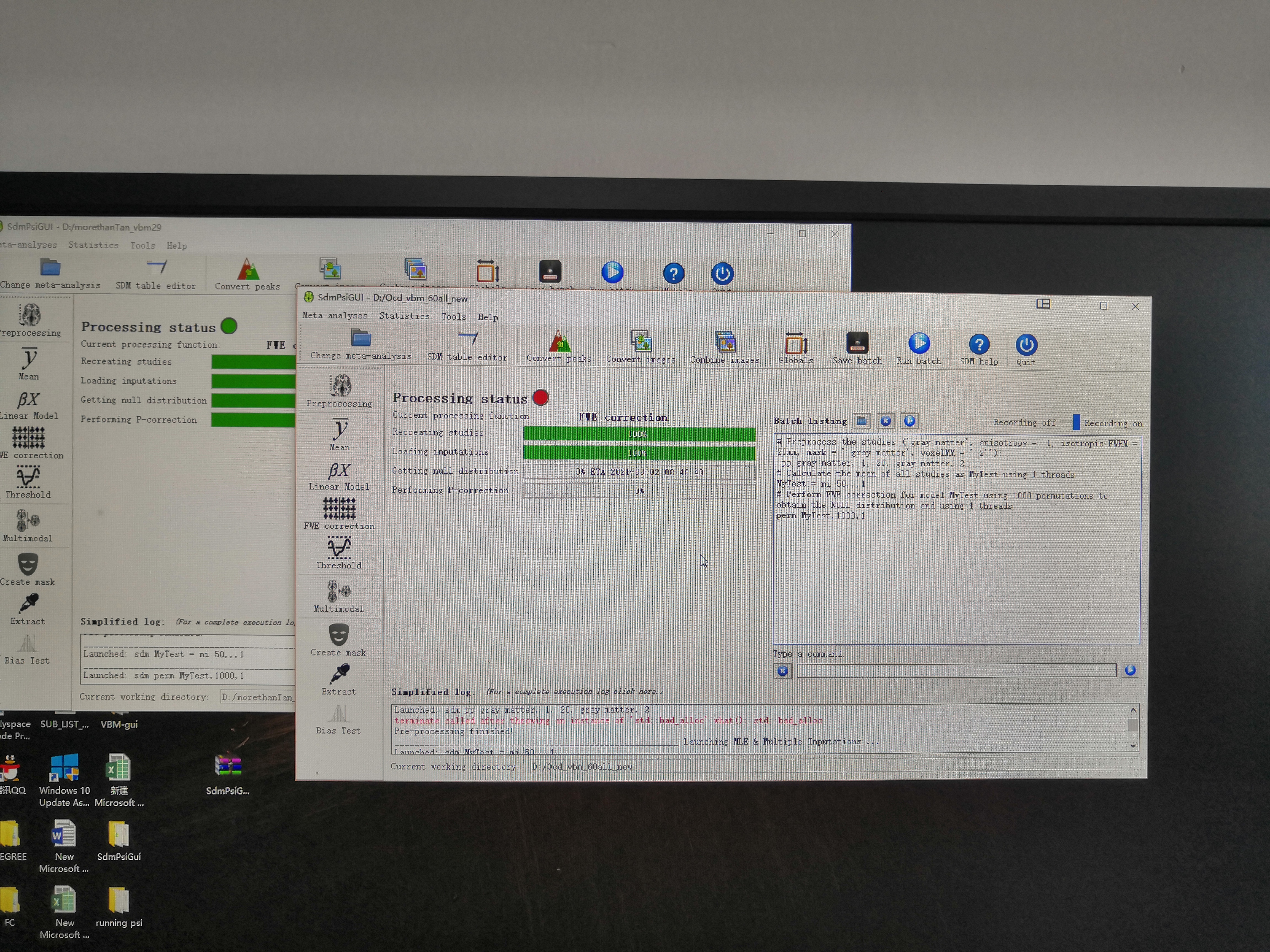 When I perform a FWE correction analysis in SDMPSI 6.21,an error has been reported. The details are as follows, "terminate called after throwing an instance of 'std :bad_alloc' what (): bad_alloc".