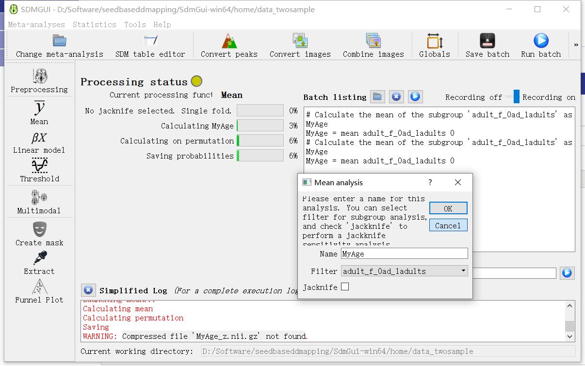 I tried to run a subgroup analysis by a 0 and 1 filter, to divide the studies into adolescents and adults, however when I run MyMean -- choose this filter, SDM reports "Compressed file 'MyAge_z.nii.gz' not found."