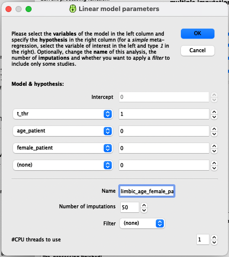 Sorry to ask another naive question but would it be correct to enter t_thr as the variable of interest (with a value of 1) and other covariates of interest assigned a value of 0 (in my case, mean age of patient group and number of female paticipants in patient group; see screenshot attached)?