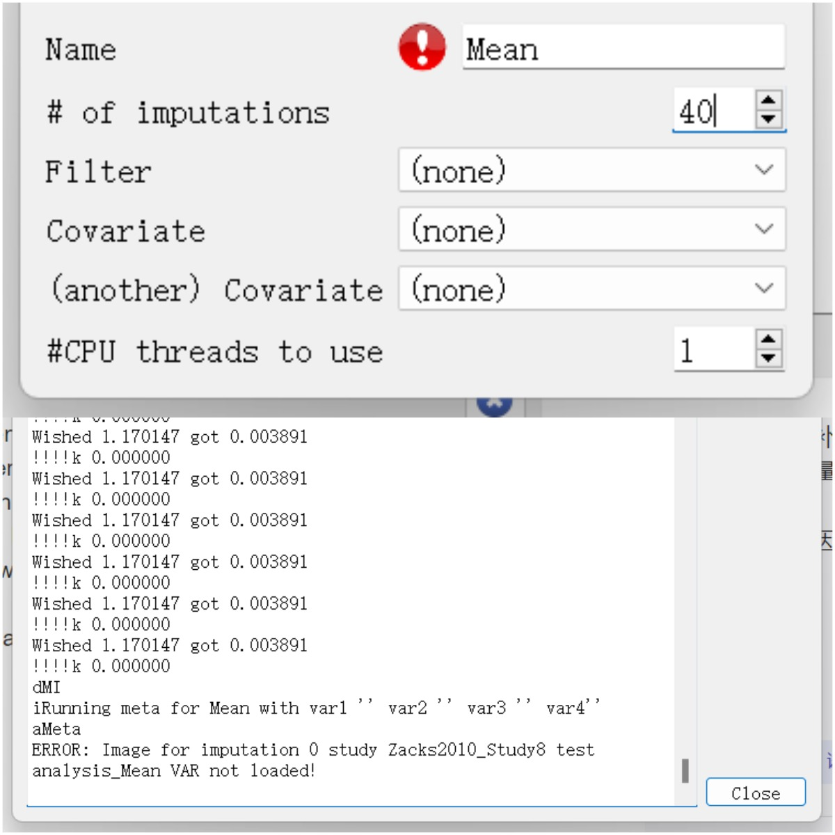 when I chose 50 imputations in the Mean analysis, the Multiple