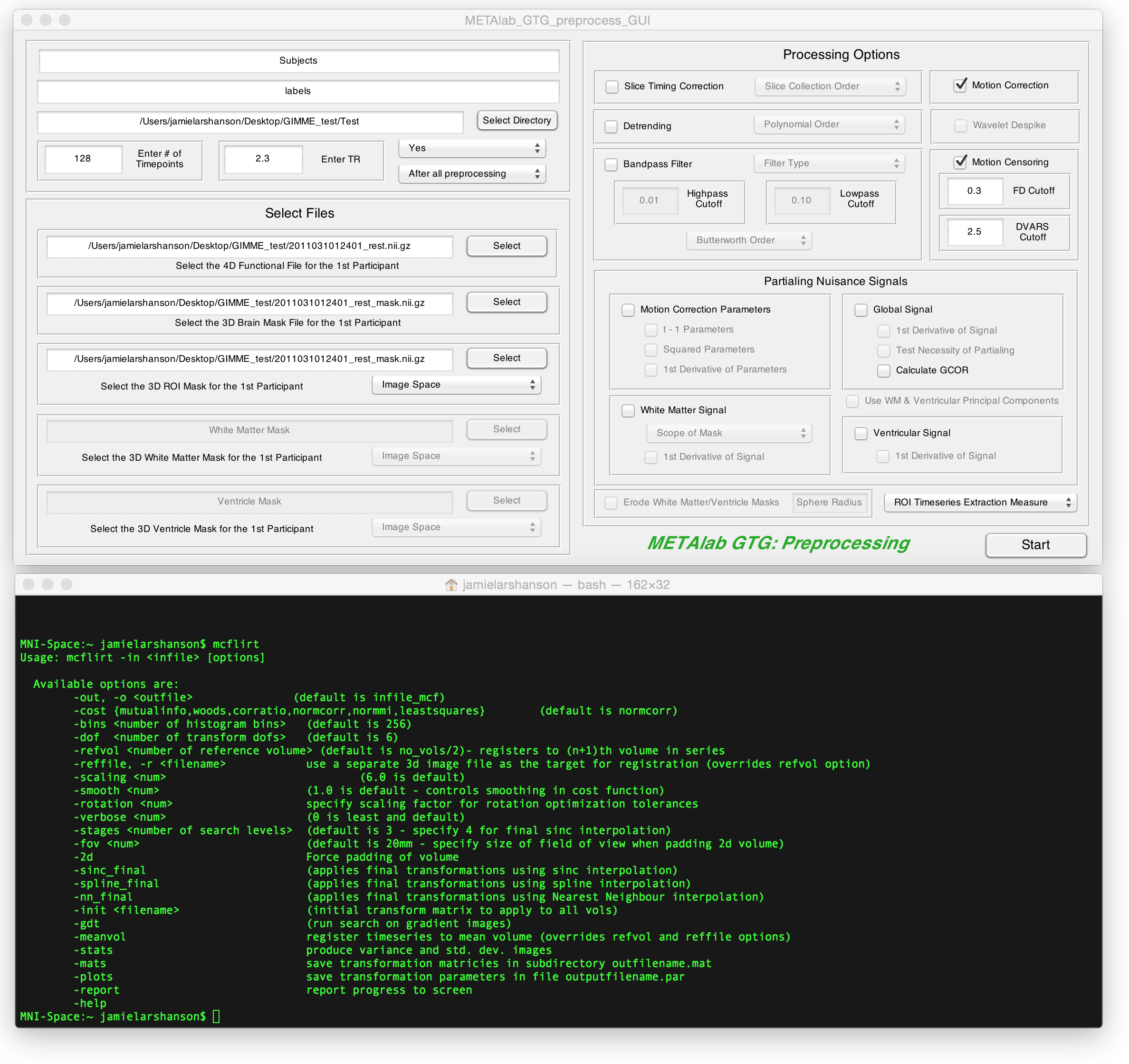 I was interested in using GTG for just pre-processing (a colleague has a novel network detection algorithm I was trying to use). Would that be possible in GTG? I tried to input a resting state scan and a whole brain mask (for both the whole brain mask and ROI mask). I however ran into some errors.