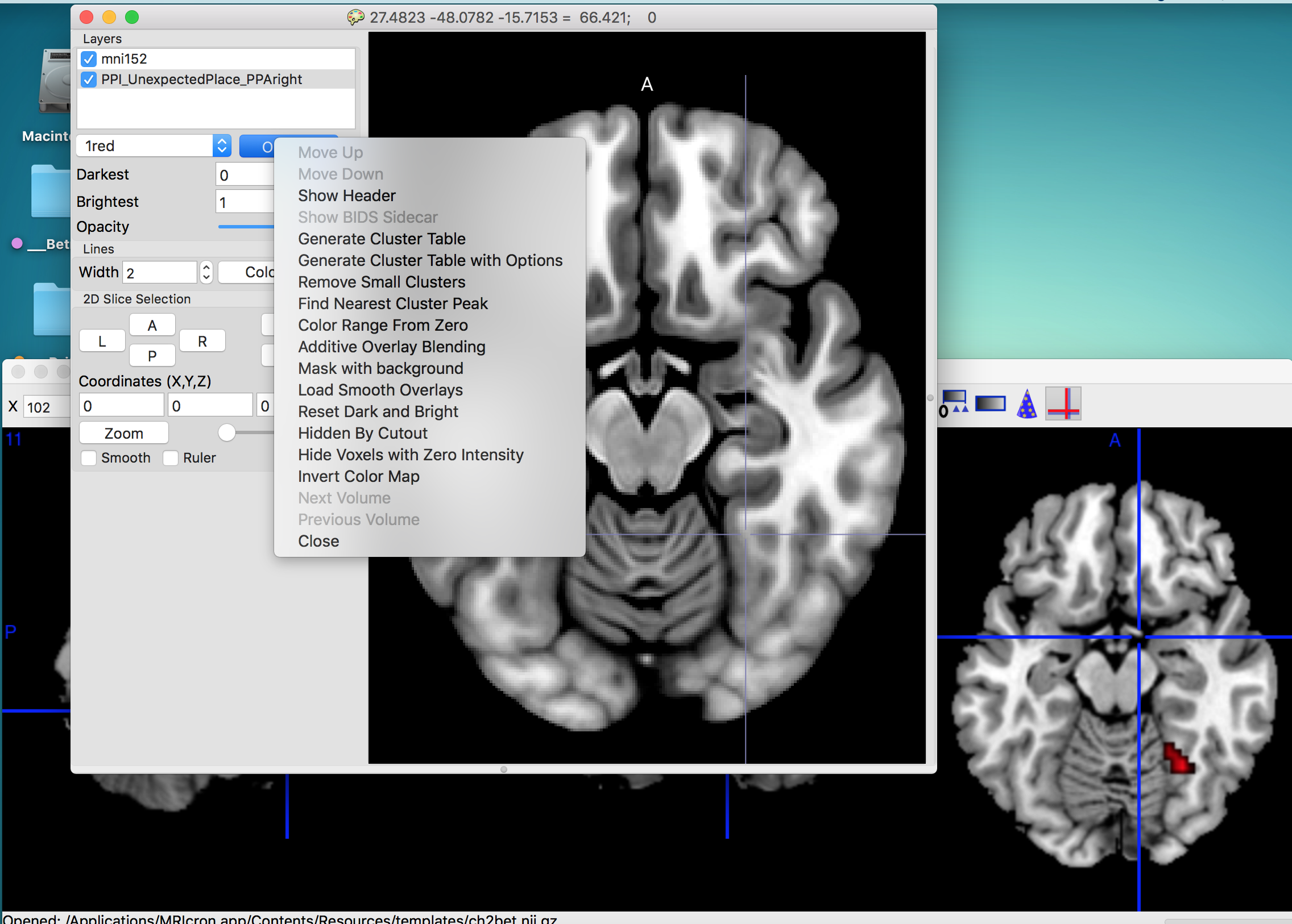 MRIcroGL doesn't show tmap when thresholded