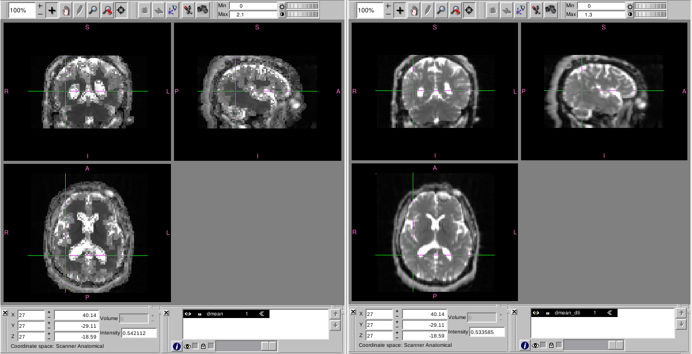the maps obtained with the dti module look normal, but those created with the dki model have larger values in gray matter and smaller values in white matter, they look very odd to me (my understanding is that the dmean and fa should look very similar when obtained with dti or with dki).