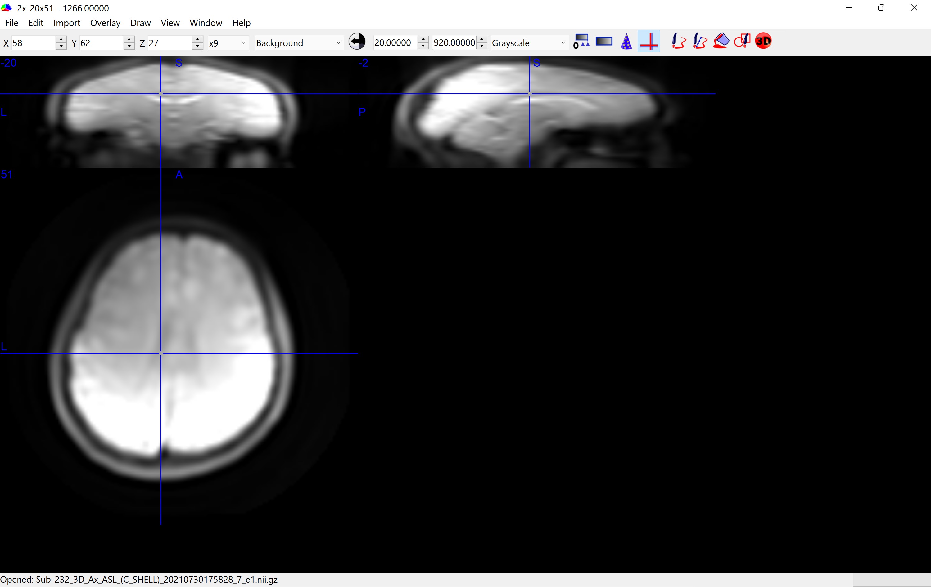 as I am very new to VLSM and using MRIcron, I was wondering if you could help me with the following (probably basic) problem: when I open iùages in MRIcron this is the standard view setting I see (see attachement). As you can see, the sagital and coronal view are suppressed for some reason. Could somebody tell me how to reset this view?