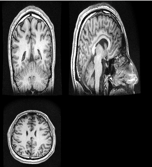 However, the image seems stretched in the z-direction, which is also the slice direction (i.e. the 3DT1 was acquired in axial mode).