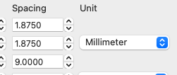 For example, in the screenshot below the voxel spacing is 1.875*1.875*9mm, so each voxel is 31.640625mm^3