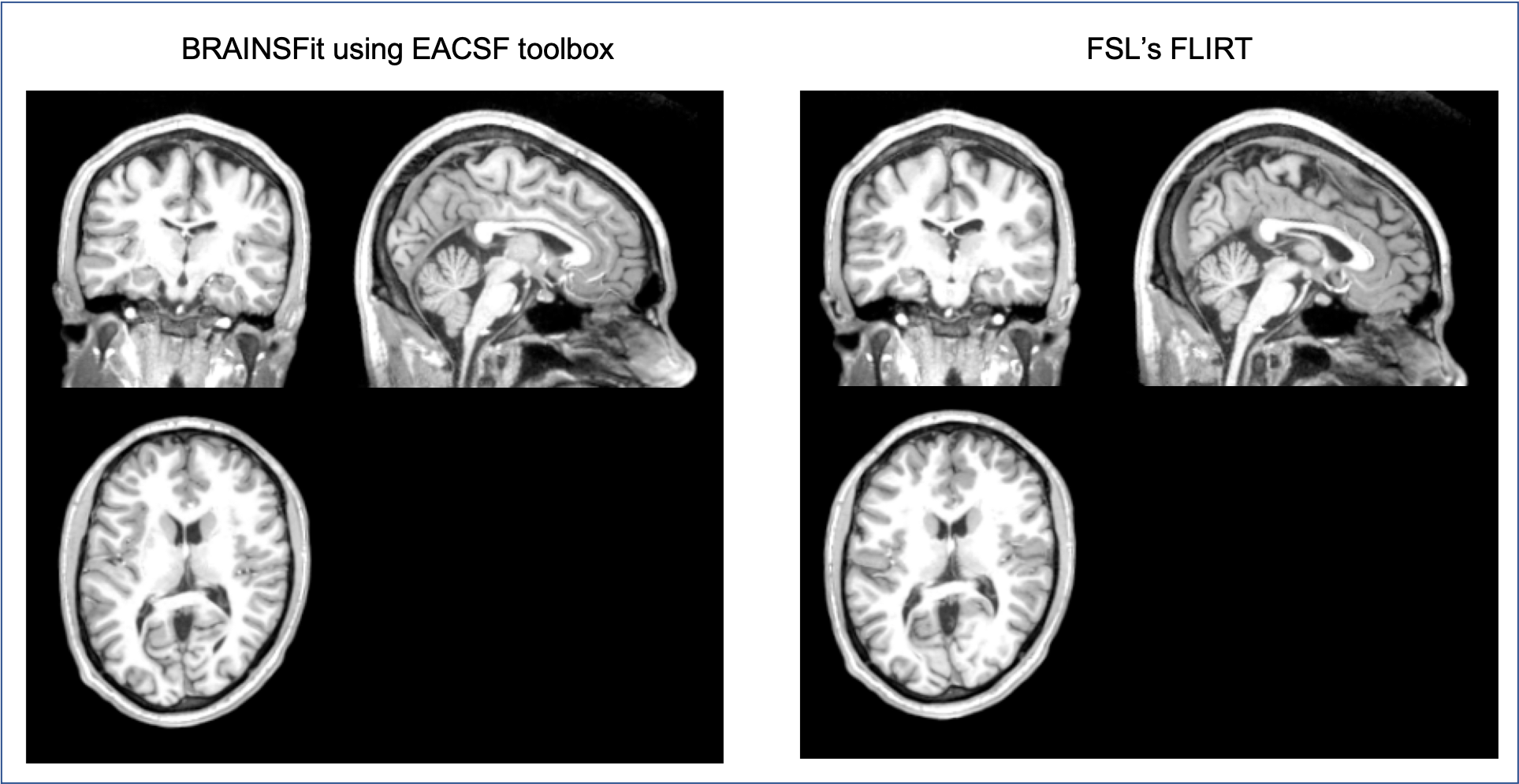 Finally, an alternative is to do the ACPC alignment manually. Several existing tools will allow you to do that. I usually use 3DSlicer load both the template and the dataset and then manually adjust the alignment transform (using the Transform module in 3D Slicer). Btw, the General Registration module in 3D Slicer is the same tool (BRAINSFit) used by AutoEACSF to do the alignment, so you could also use a good manual transform as an initialization for the General Registration module