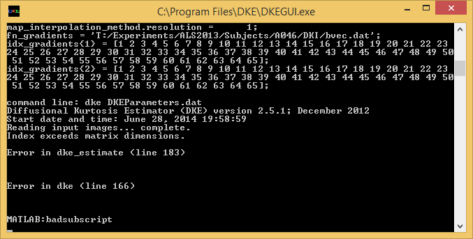 When I leave the b-values to be [0 1000 2000] I get the error: "Processing failed with message: No error" in the GUI and "bad subscript" error in the command window.