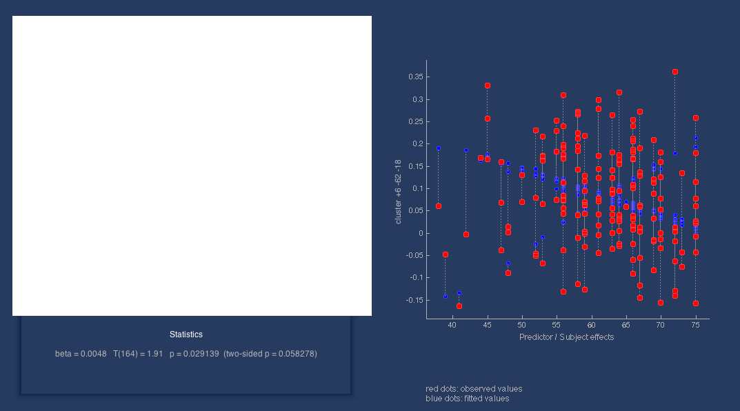Thanks so much for your reply. It was very helpful. We went ahead and ran the associations separately, as you suggested. We believe we find a very strong positive correlation between performance and group B and a very strong negative association between performance and Group A (screenshots are attached). In this case would it be a correct interpretation to say that the negative contrast we find in the cluster is driven by both of these associations? Or would it be attributable more specifically to one than the other? We also included a screenshot of the main effect of the two.