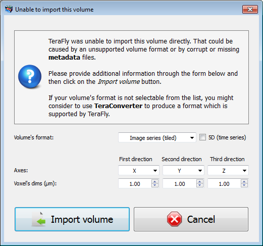 1. If the output terafly format is tiled 2D tiff, sometimes the image cannot be loaded by TeraFly. The warning message is attached. But if you close and reopen Vaa3D, the image can be loaded by TeraFly again.