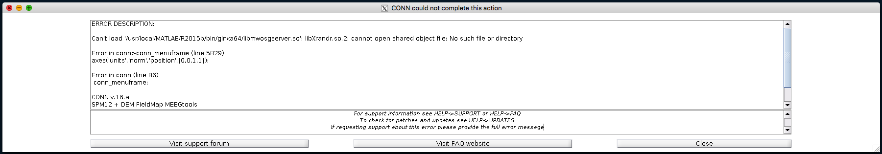 I'm running into an error when I ssh to a linux machine with X11 window forwarding and try to start conn (see pics)