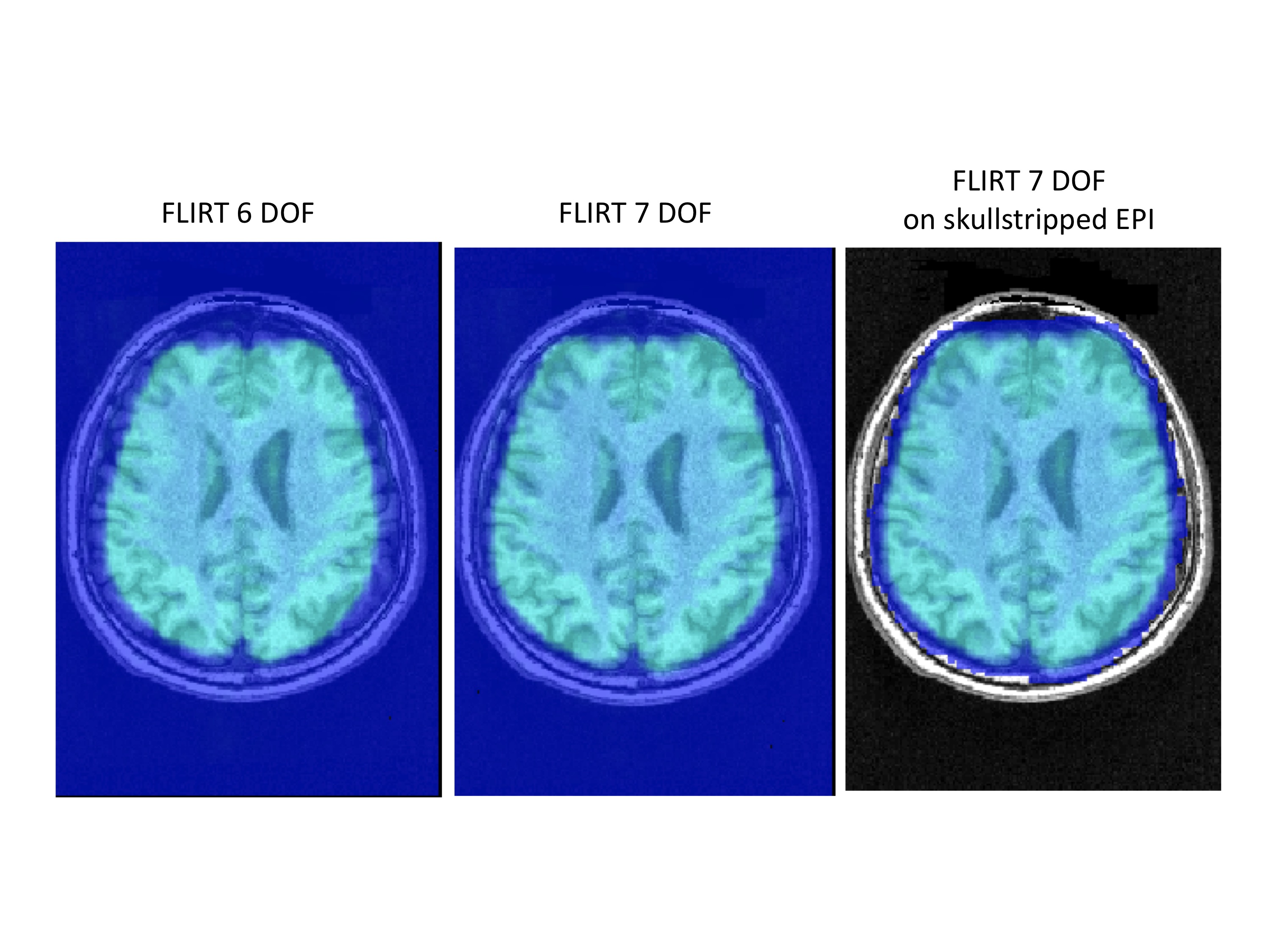 As to why 7 DOF appears to work better, one possibility is that some degree of scaling may have occurred for the EPI on the scanner. As indicated before, we are not sure whether the EPI and MPRAGE for these subjects were collected on the same day.