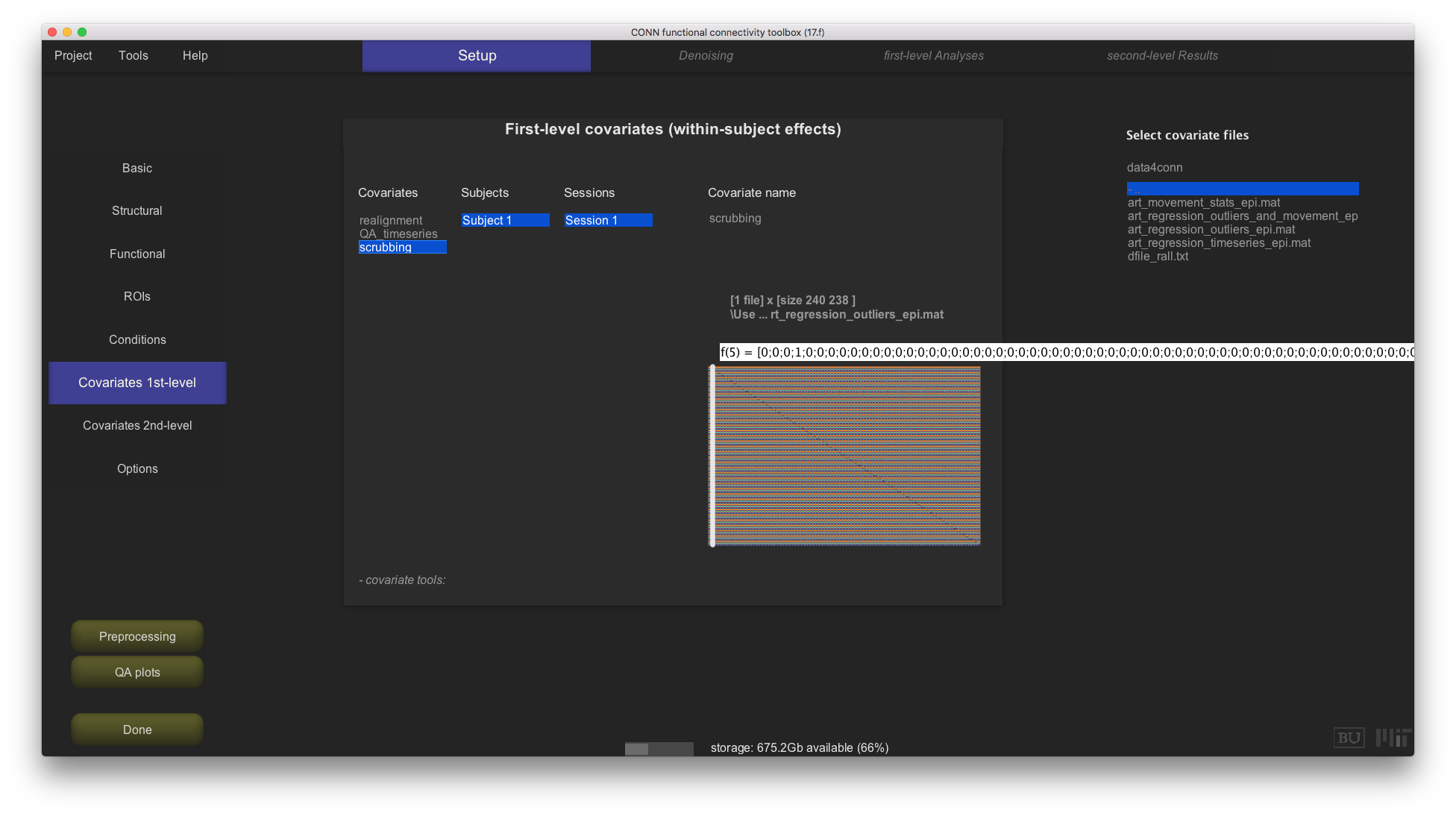 Thank you for telling me about scrubbing. However strange result was obtained from CONN, so I would like to consult with you. I will attach a file of screenshot. Scrubbing result looks like a correlation matrix, and it is different from usuall CONN's result. This result seems to be incorrect, but is there a way to fix it?