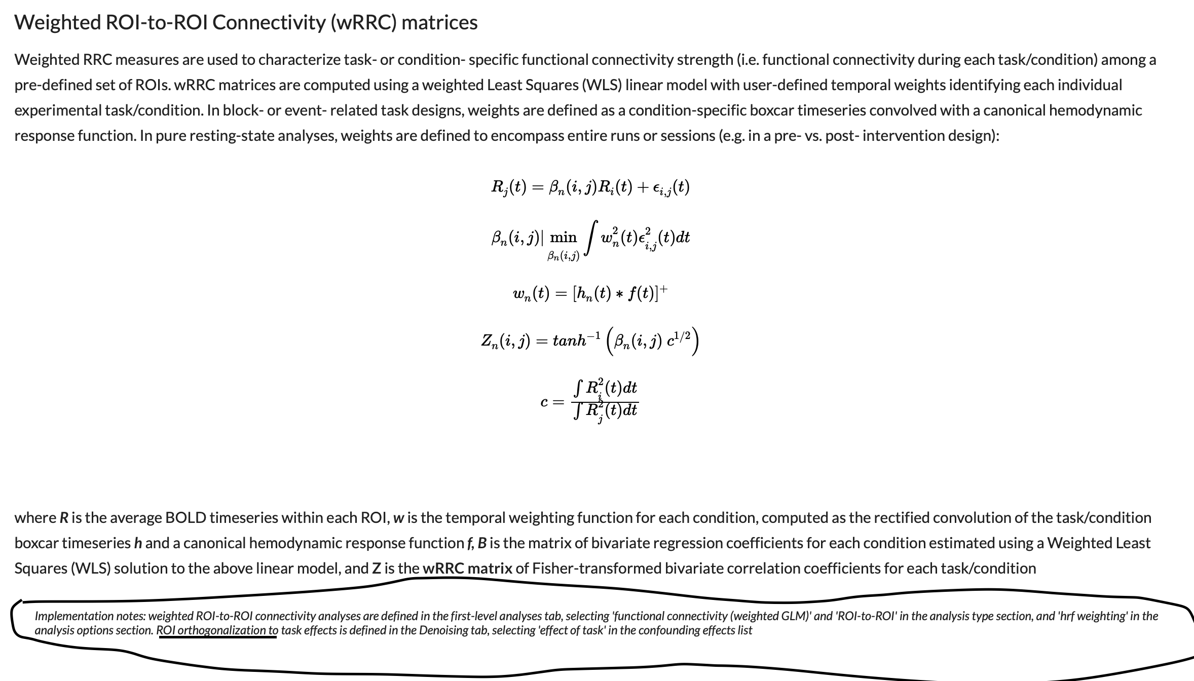 My understanding is that for the connectivity analysis the event is convolved with an HRF function and the weighted-GLM is similar to a beta-series correlation approach. In that instance I am concerned that removing the effect of task in the denoising step may be removing the very signal I want to capture and correlate across ROIs.