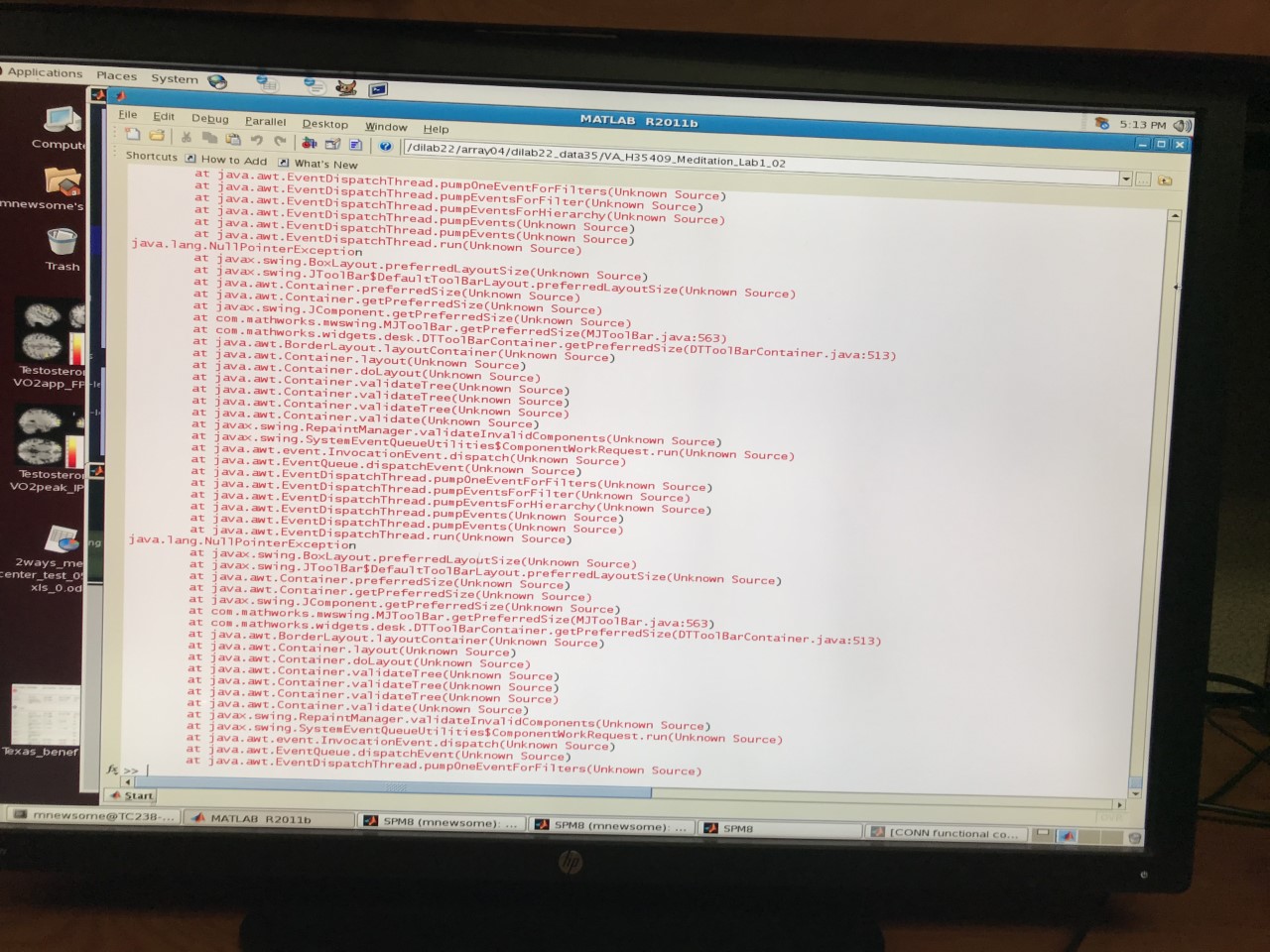 Hope you're well in these unusual times. I have been getting numerous running java messages after loading an analysis, so much so that it takes up RAM and prevents any processing (with windows opening or closing very slowly). We use a Linux computer with Red Hat Enterprise 5, Matlab 2011b, Conn version 16b. We have not made any changes to the OS or Matlab or Conn versions and were surprised when this started to happen as things ran smoothly before. It's been going on for months. Before this started to happen, we would get running java error messages, but they did not influence processing. When using SPM with Matlab, this disruption hasn't appeared so far. One of the many messages is "Exception in thread 'AWT-EventQueue-0' java.lang.NullPointerException", but you can see more in the attached jpg. The messages keep coming and don't seem to stop. Just wondering what your thoughts are. Thanks!