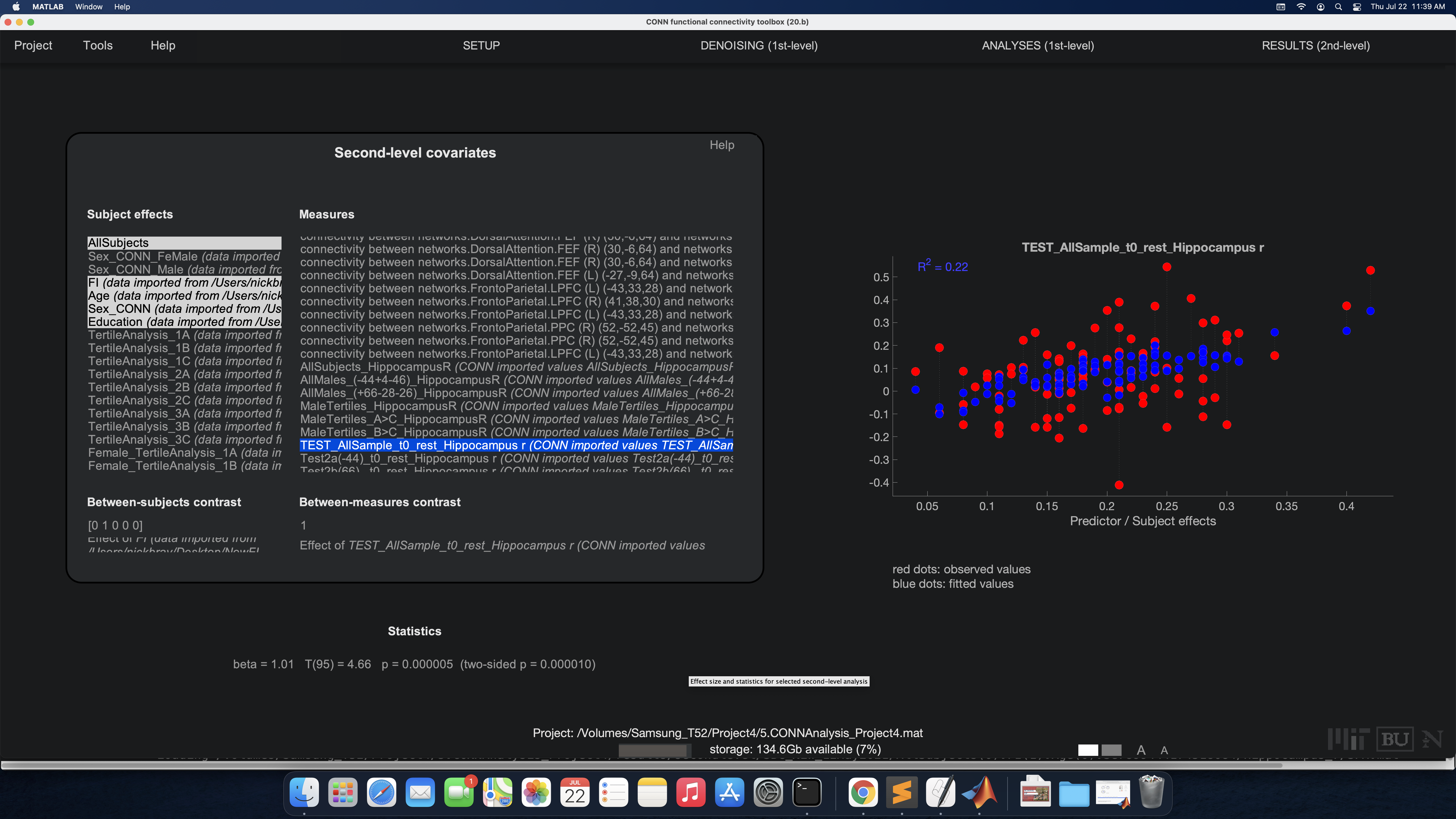 1) I "Imported Values" of the cluster showing increased connectivity with the Hippocampus to my 2nd-level covariates. Then in calculator I...