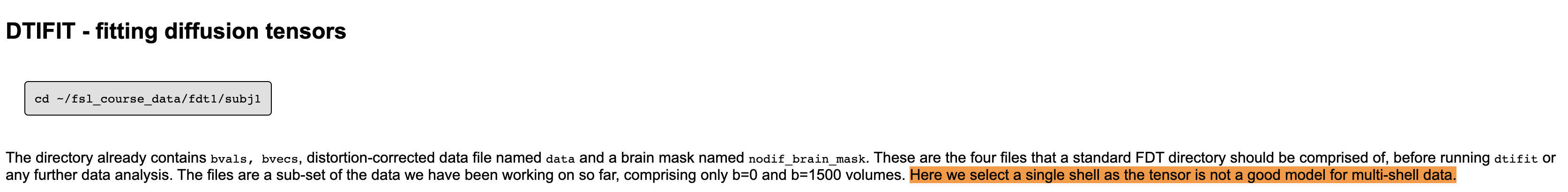 1) I have multi-shell DTI data and I had read that FSL's DTIFIT tool isn't ideal for processing this kind of data that has multiple b-values (please see attached image and site: https://fsl.fmrib.ox.ac.uk/fslcourse/201... for source info). However, when I ran it on my data, it somehow did produce FA maps, etc. All I need to know is whether anybody has a good detailed understanding about the background process that FSL performs in order to generate these results and how it exactly did that for my data???