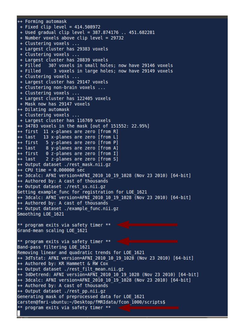 The scripts still continue though. The only link I can find with google points to AFNI, but without any further explanation; it happens at different timepoints in between, and also after the script has finished these error messages continue (see the last arrow in the attached screenshot).