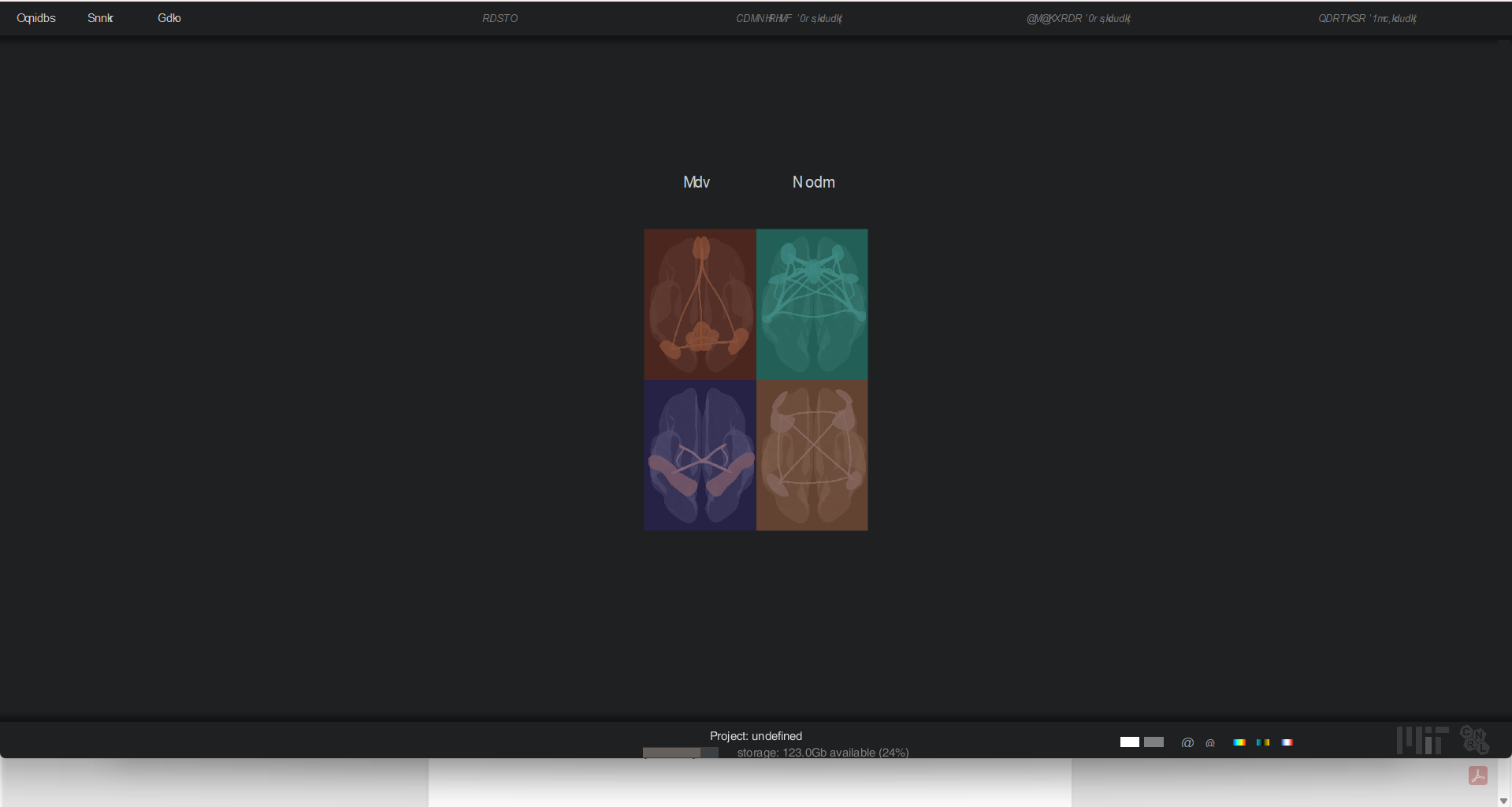 - Menu tabs show garbled text: "Oqnids", "Smlk", "Gdlo"