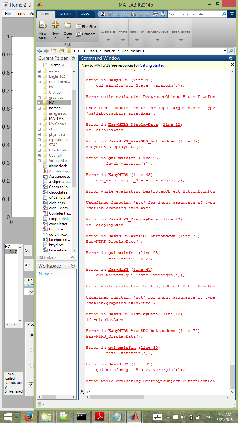 an error in the command area of matlab. I will list my setup